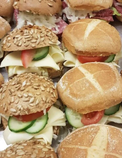 Als Caterer beliefern wir Sie mit belegten Broten, Brötchen, kalten Platten und süßen Leckereien. Ganz individuell nach Ihren Wünschen